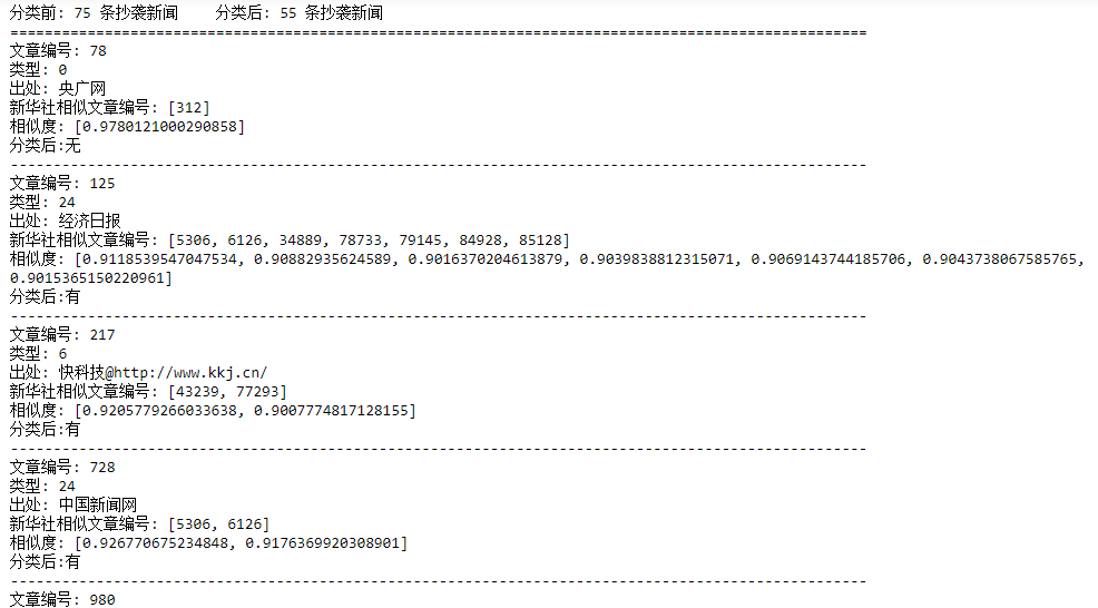 print('分类前:', len(all_results), '条抄袭新闻', '\t分类后:', len(results), '条抄袭新闻')
